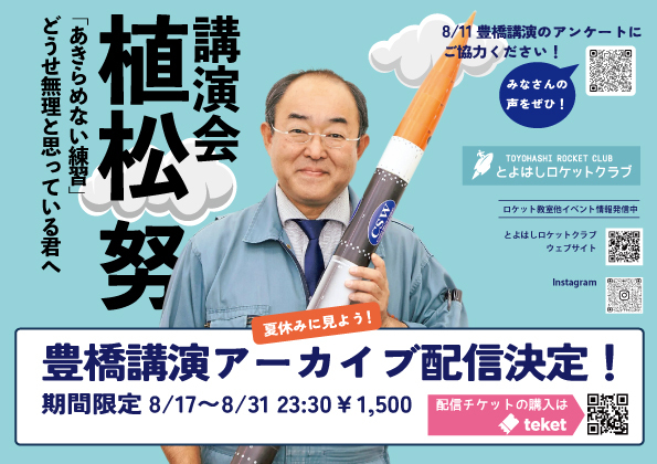 夏休みに見よう!とよはしロケットクラブ主催 植松努講演会in豊橋公会堂 期間限定アーカイブ配信 「あきらめない練習」どうせ無理と思っている君へ